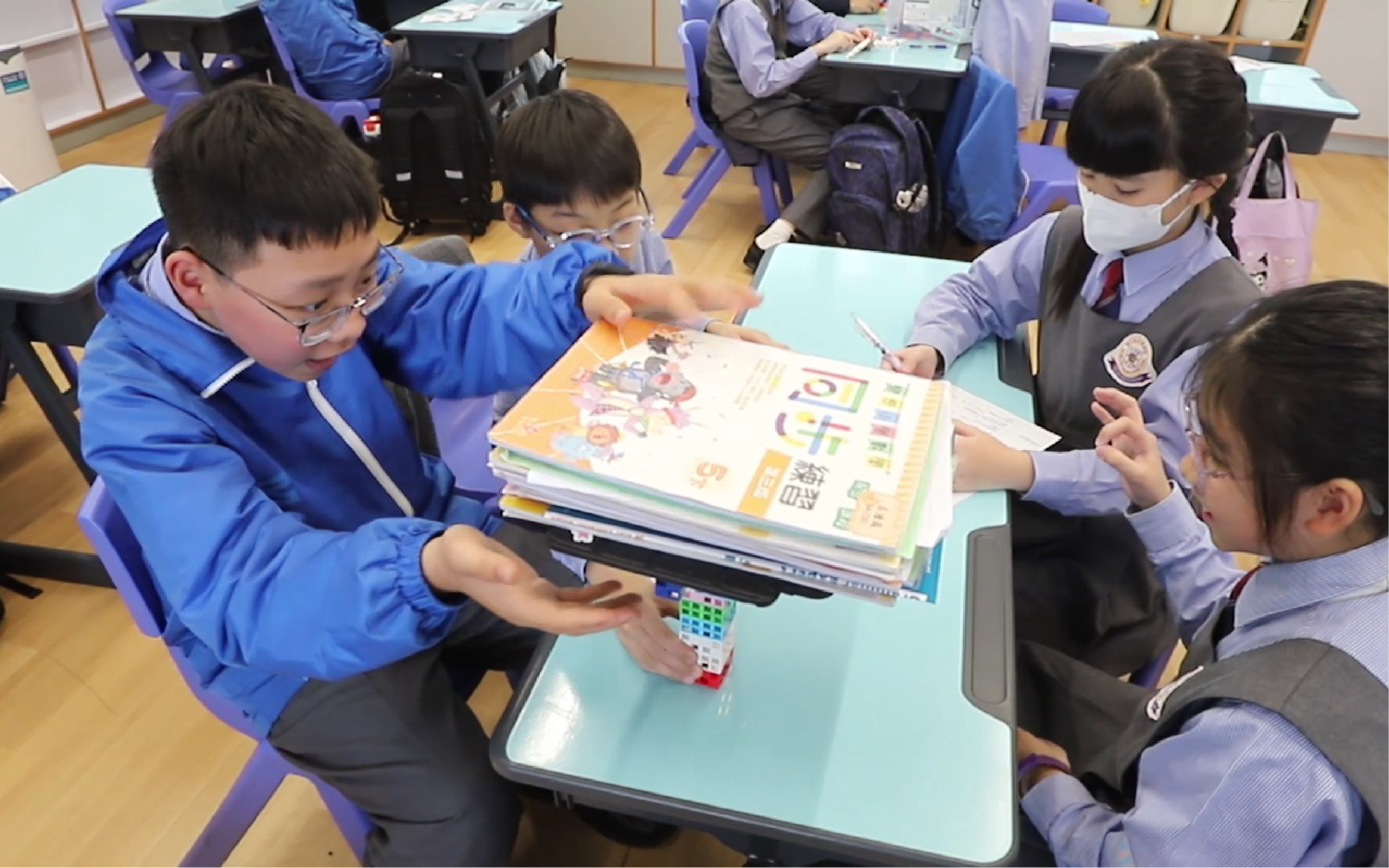 梁老師指:「我們會讓學生運用不同的知識,從動手中去探索,亦可以提升他們的學習興趣。」在課堂中,梁老師會先透過影片、圖片,加深同學對斗拱的了解。梁老師明白當同學只看到圖片、影片時,他們未必有很深刻的感受。因此接下來會讓同學分為四人一組,讓他們嘗試動手,分工合作,用Artec積木拼砌斗拱模型,按工作紙提示拼砌5種不同形狀的斗拱構件,再將部件組合成中國傳統建築斗拱的模樣。不單讓同學在砌積木的過程裡面,嘗試解難、溝通、合作,更讓他們深入地掌握斗拱結構的特點,從中明白斗拱結構在中國傳統建築中的作用,例如抗震等。梁老師笑言:「我不會即時展示結果或完成作品,而是需要他們自己去探索。」